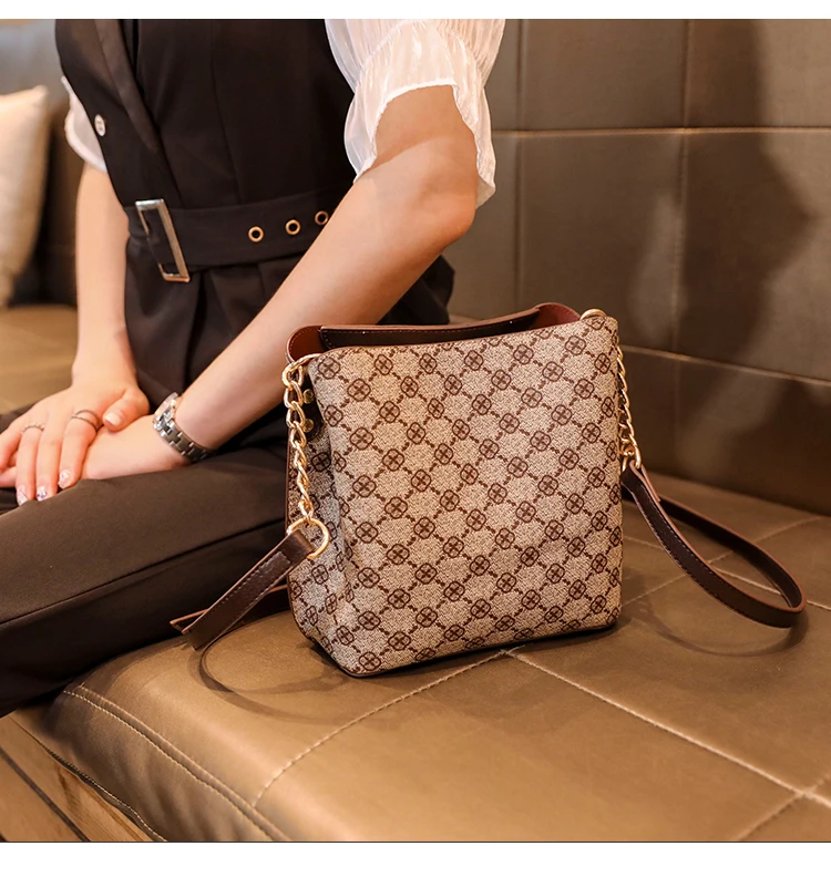 Women's Fashion Small Bucket Shoulder Bag – Luxury Crossbody Bag with Chain Strap, Vintage PU Handbag